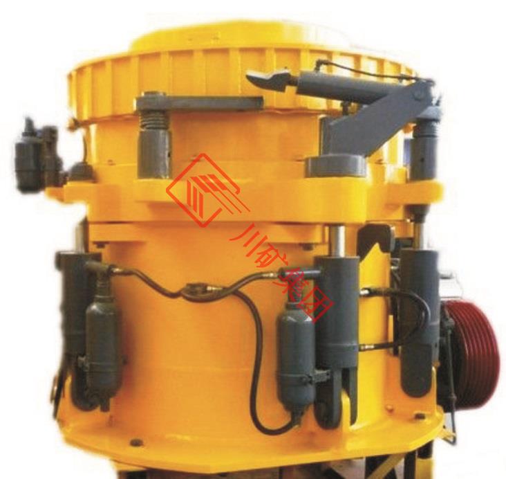圓錐破碎機(jī)工作時,電動機(jī)通過彈性聯(lián)軸器、傳動軸和一對錐齒輪帶動偏心軸套轉(zhuǎn)動,破碎圓錐軸心線在偏心軸套的迫動下做旋擺運動,使破碎壁和軋臼壁時而靠近,時而遠(yuǎn)離,礦石在破碎腔內(nèi)不斷地受到擠壓、撞擊和彎曲而被破碎。